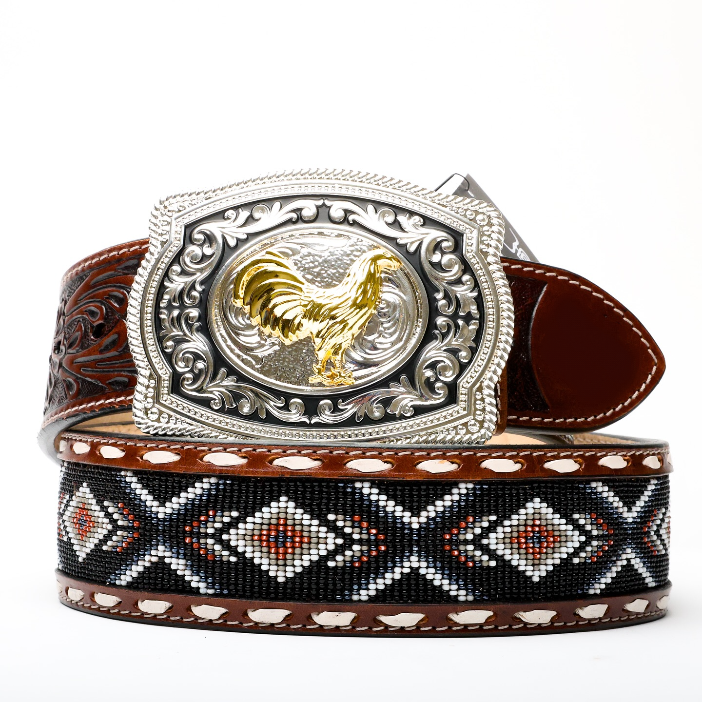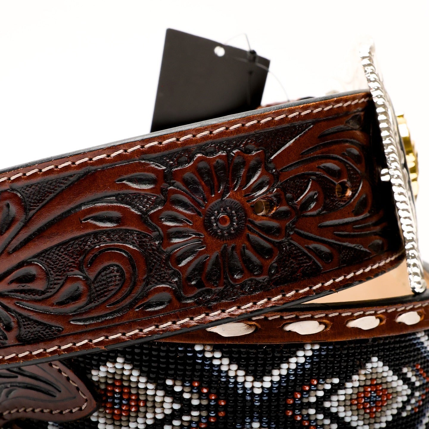 2 Inch Hand-Tooled Artesanal Beaded Leather Belt